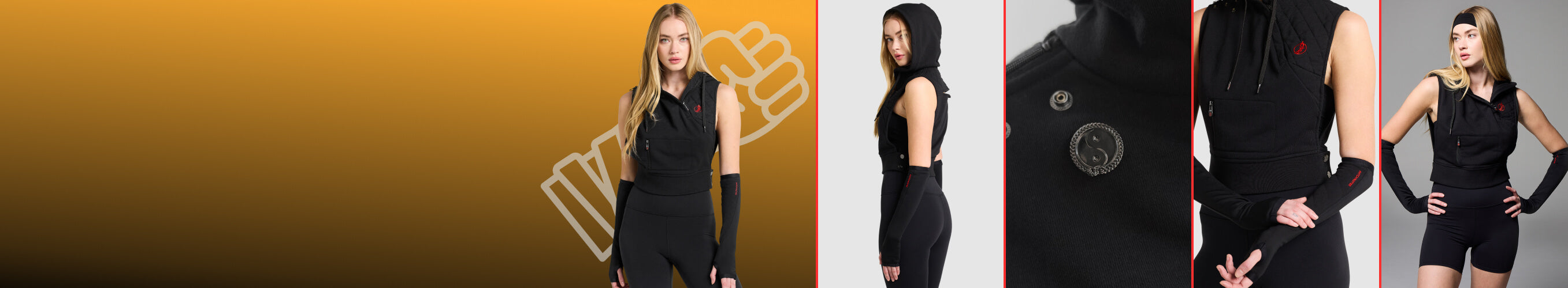 The Martialist Hoodie is designed with movement in mind. Featuring a sleeveless design, an open back seam, and an adjustable waist with snaps, this hoodie allows for unrestricted motion while maintaining a bold, unique look. Paired with fingerless sleeve gloves, this piece provides both function and style, perfect for those who embody the spirit of the Martialist.